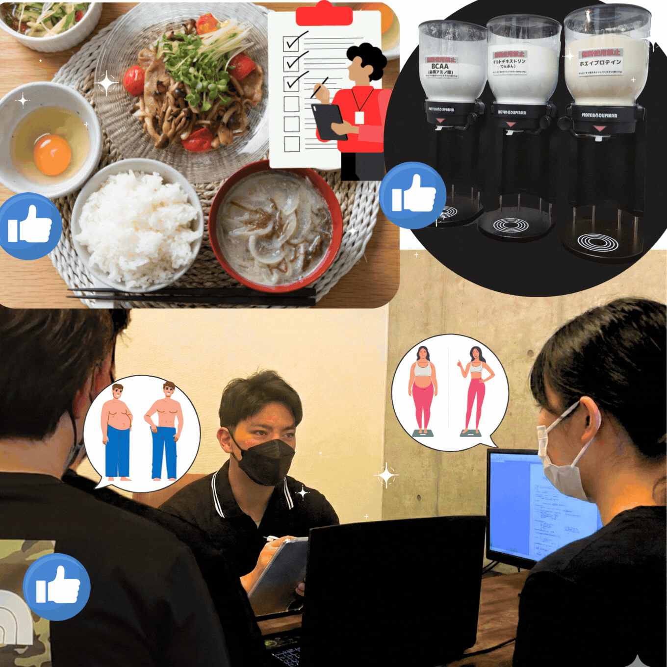 トレーナーとしてセッションの終了後、より体型変化を実感して頂く事が使命です。その為にお客様の目標体型に合わせたサプリメントを準備させて頂きます。