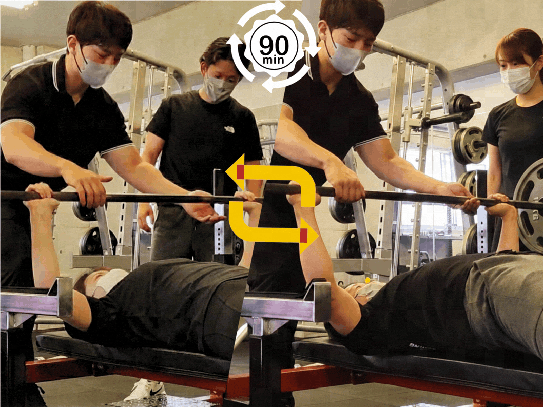2人パーソナルトレーニングは90分間の時間設定にしております。